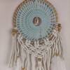 Menta színű álomfogó, melyet a ráhelyezett tollak és kagylók tesznek igazán különlegessé. Az álomfogó kézzel készült, formája és letisztultsága pedig harmóniát teremt a hálószobádba. Az álomfogó a hiedelmek szerint elűzi a rossz álmokat, helyette nyugodt, békés pihenést ígér.