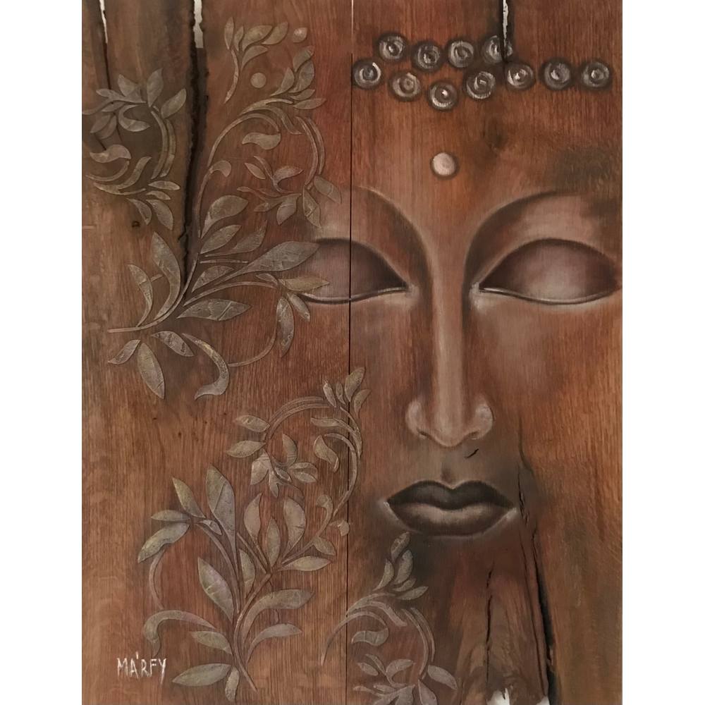 Nyugodt Buddha Olajfestmény Tölgyfa - 47 cm x 63 cm