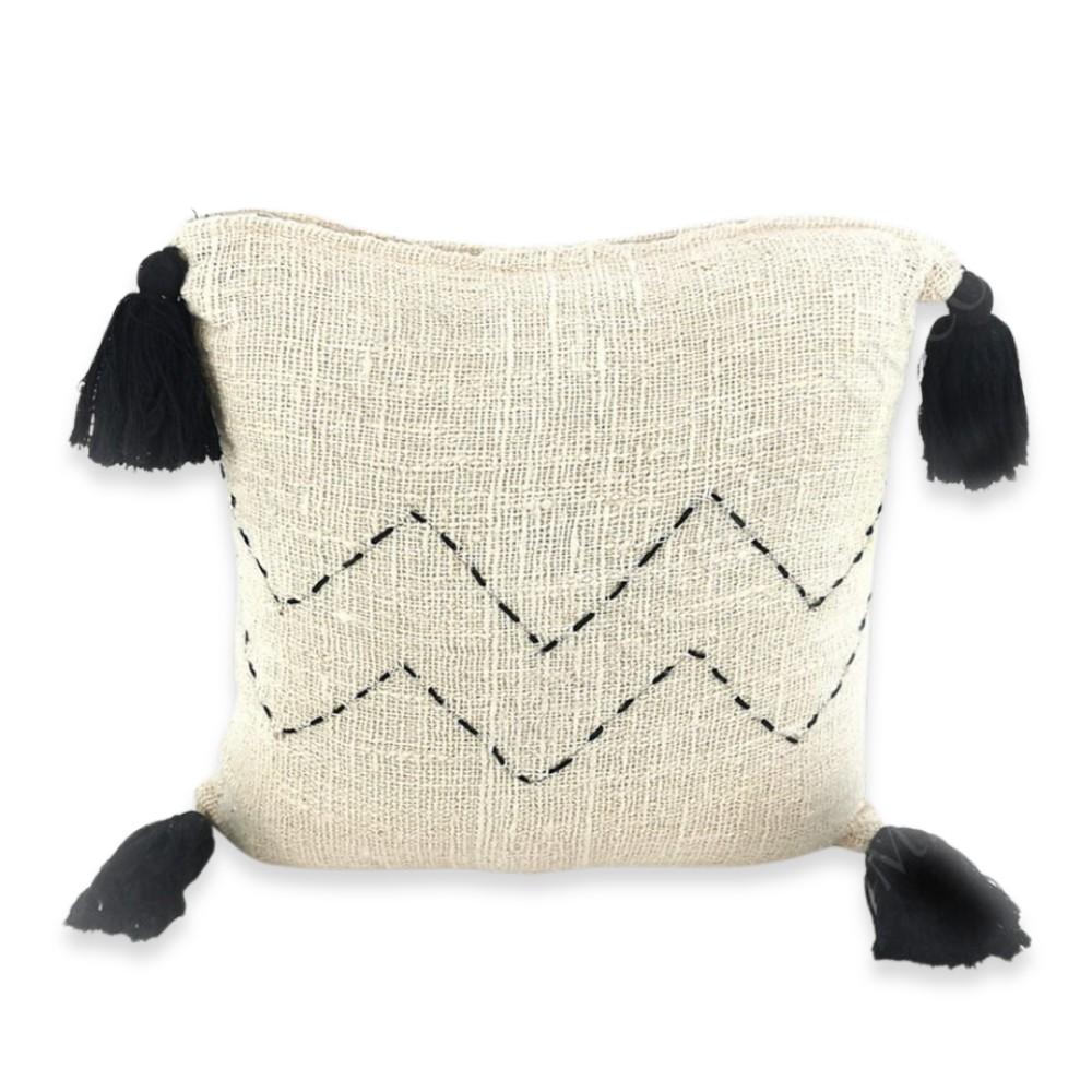 Semapura Cikkcakk Mintás Bézs Díszpárna Fekete Rojtokkal - 40 cm x 40 cm