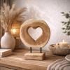 Ez a kézzel faragott, szív formájú asztali dekoráció a balinéz kézművesség letisztult szépségét hordozza.